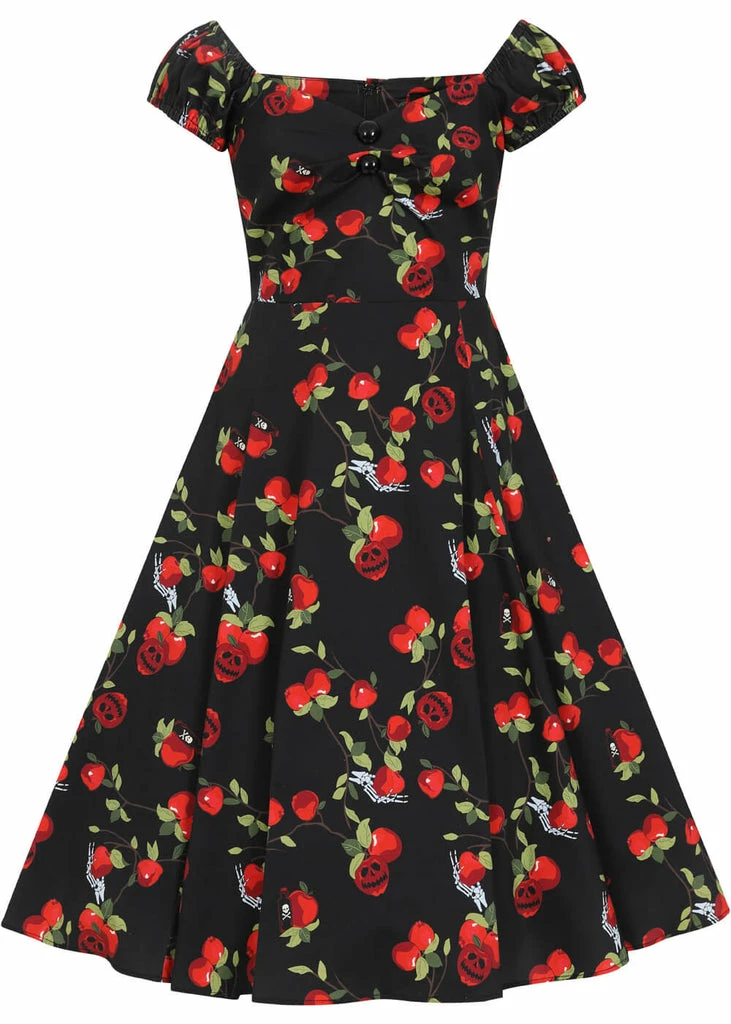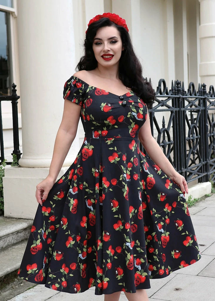 From the waist down she flows into a full skirt, which is perfect for combing with one of our petticoats to spread the love! She closes with a zipper on the back and with a height of 1.70 she reaches below the knee.