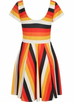 The waist is accentuated by the seam, from where she flares into a playful skirt that you can also wear with one of our petticoats. For a height of 1.70 m, she ends above the knees, and she closes with a zipper in the back.
