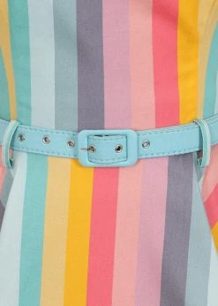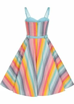 This stunning model has triple(!) adjustable shoulderstraps and a low sweetheart neckline so you can enjoy the sun as much as possible 😉 The seams add a beautiful fit and the high waist is accentuated by the loose belt. Downwards she flares out into a full skirt, which you can perfectly combine with one of our petticoats for that even more cheerful extra!