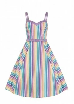 This stunning model has 3-double (!), adjustable shoulderstraps and a low sweetheart neckline so you can enjoy the sun as much as possible 😉 The seams add a beautiful fit and the high waist is accentuated by the loose belt. Downwards she flares out into a full skirt, which you can perfectly combine with one of our petticoats for that even more cheerful extra!