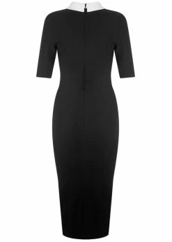 Winona is a great dress made of stretchy bengaline, so she’s stunningly closefitting and a dream to wear. From the seam at the waist, she transforms into a VaVaVoom pencil skirt, that ends around the knees for a height of 1.70 m and she closes with a zipper in the back.