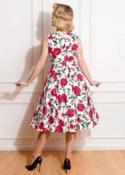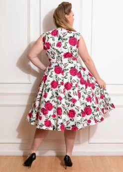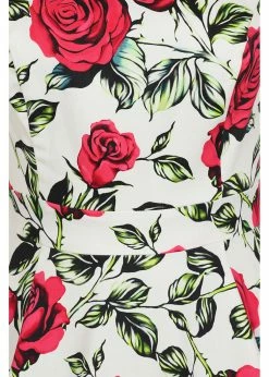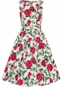 Hearts & Roses got inspired by the classic Audrey Hepburn-look, giving this beauty a higher round neckline and a high neck. The romantic flowers look as pretty as a painting, on a high quality cotton-mix with slight stretch. The bodice is nicely close-fitting thanks to the princess seams.