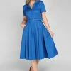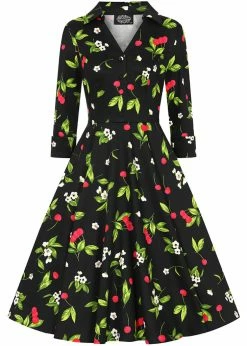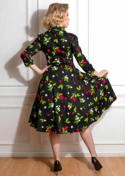 This beauty is pure vintage romance with her cotton-mix with fine stretch and playful cherries. The v-neck and decorative buttons on the bodice make for an irresistible look.