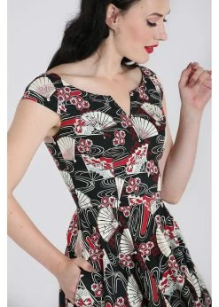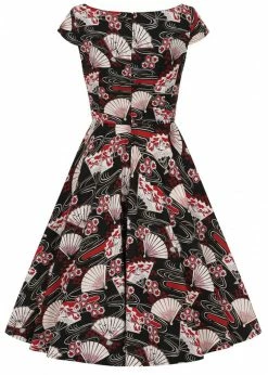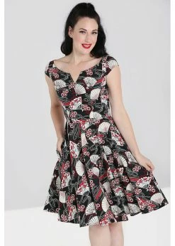 Lanah is made of a high quality cotton-mix with slight stretch, which makes her just a fantastic to wear as she looks! From the waist, she flares into a full skirt with pockets that you can beautifully wear with one of our petticoats to make the print come to life. She closes with a zipper in the back and for a height of 1,70m she ends around the knees.