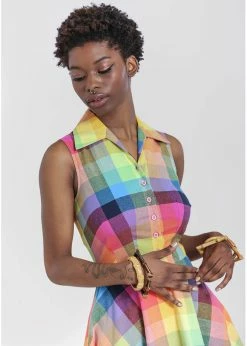 She could have walked straight out of Grease, with her collar and functioning buttons at the front… Her lovely cotton-mix has fine stretch, so she’s lightweight to wear and fits beautifully.