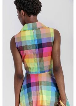The waist is accentuated by the waistseam, from where she flares into a full skirt with pockets. Stunning with one of our petticoats! She closes with a zipper and a hook in the back and ends on the knee for a height of 1,70 m.