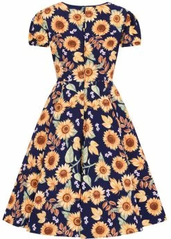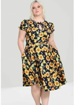 Like the sun herself, these flowers are shining from the smooth fabric with fine stretch, and rightfully so with all those details to enjoy: like the playful keyhole in the neckline, that is adorned witha little bow and black piping, just like the short sleeves which are slightly puffy thanks to the comfortable elastics.