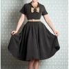 The princes seams and slight stretch in the lovely cotton-mix make for an elegant fit, from the waist she flares from small pleats into a full skirt with pockets. Perfect to combine with one of our petticoats to make the look even sweeter! She closes with a zipper in the back and ends around the knees for a height of 1.70m.
