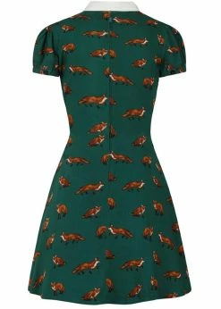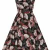 The little white collar and the black velvet bow make her look even more playful. Her decorative pleats across the front add a beautifull fit and because of her 100% viscose material she’s lovely and airy. From the waist down she flares out into a playful skirt which with a height of 1,70 reaches above the knee and closes with a zipper on the back.
