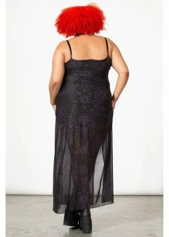 Her mesh is covered with mysterious symbols, can you read them? The material has stretch, which makes her Vavavoom closefitting and semi-transparent, but she also has an underdress that ends far above the knees for a height of 1,70 m. The shoulder straps are adjustable and she closes with a zipper in the back.