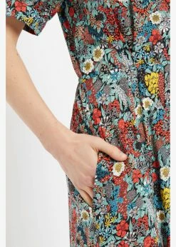 You keep discovering different flowers in the floral pattern, even the collar is covered with it! She’s made of a lovely breathable viscose without stretch, that dances along when you move.