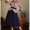 Your slimmest part is accentuated by the waistband, from where she flares into a full circle skirt with pockets that you can beautifully wear with one of our petticoats for the perfect 50’s look. She closes with a zipper and for a height of 1.70 m, she ends below the knees.