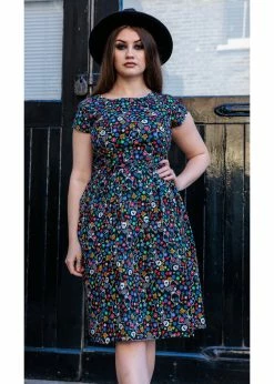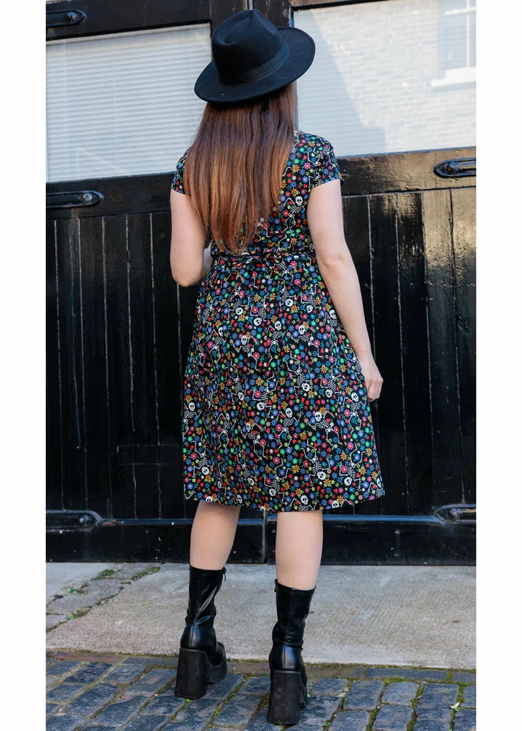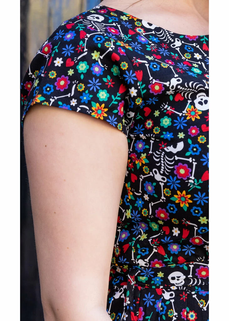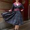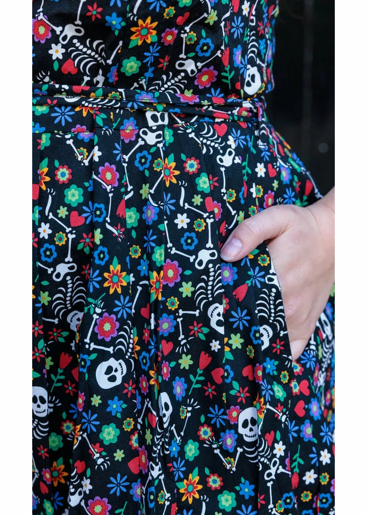 The figure seams in the bodice make for a lovely fit. The high waist is accentuated by the removable sash that you tie in the back, from where small pleats flare into a playful skirt with pockets. She closes with a zipper on the side and for a height of 1.70 m, she ends around the knees.