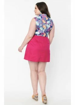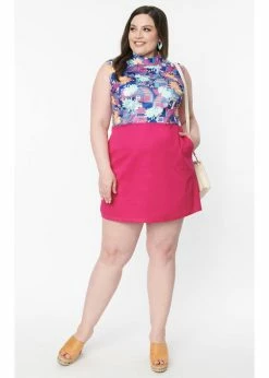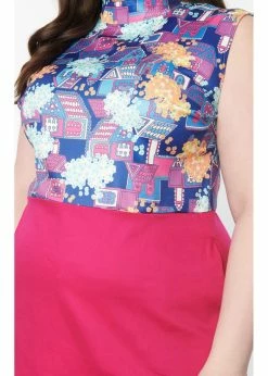The only thing that could improve these adorable houses is a fuchsia skirt! The bodice is made of a breathable cotton mix without stretch, while the skirt is made of a smooth fabric with fine stretch. Her sleeveless model with the high neck and de playful A-line make her the perfect 60’s dress.
